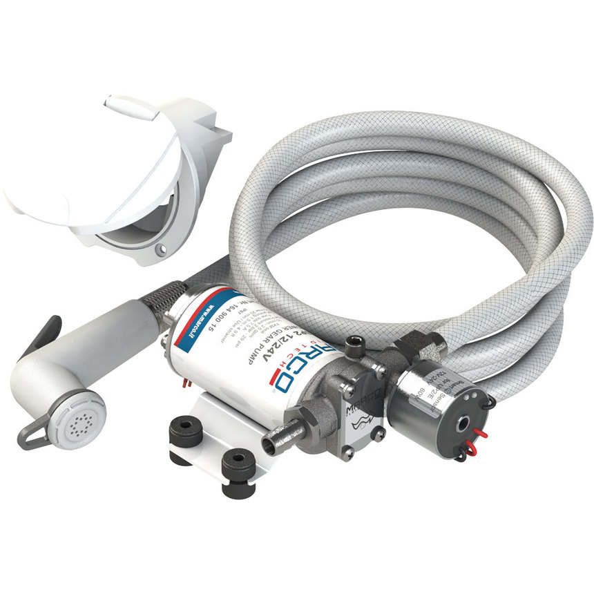 Ολοκληρωμένο σετ ντούζ για σκάφος ή τροχόσπιτο. Διπλής τάσης 12/24V Ηλεκτρονική πρεσσοστατική αντλία συνεχής χρήσης